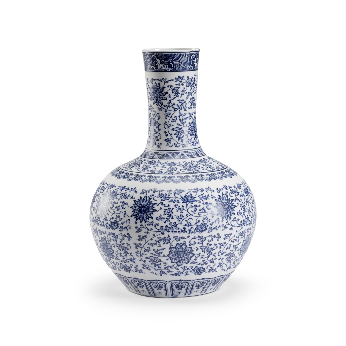 Matte finished blue and white ceramic vase. (Vase opening: 4")