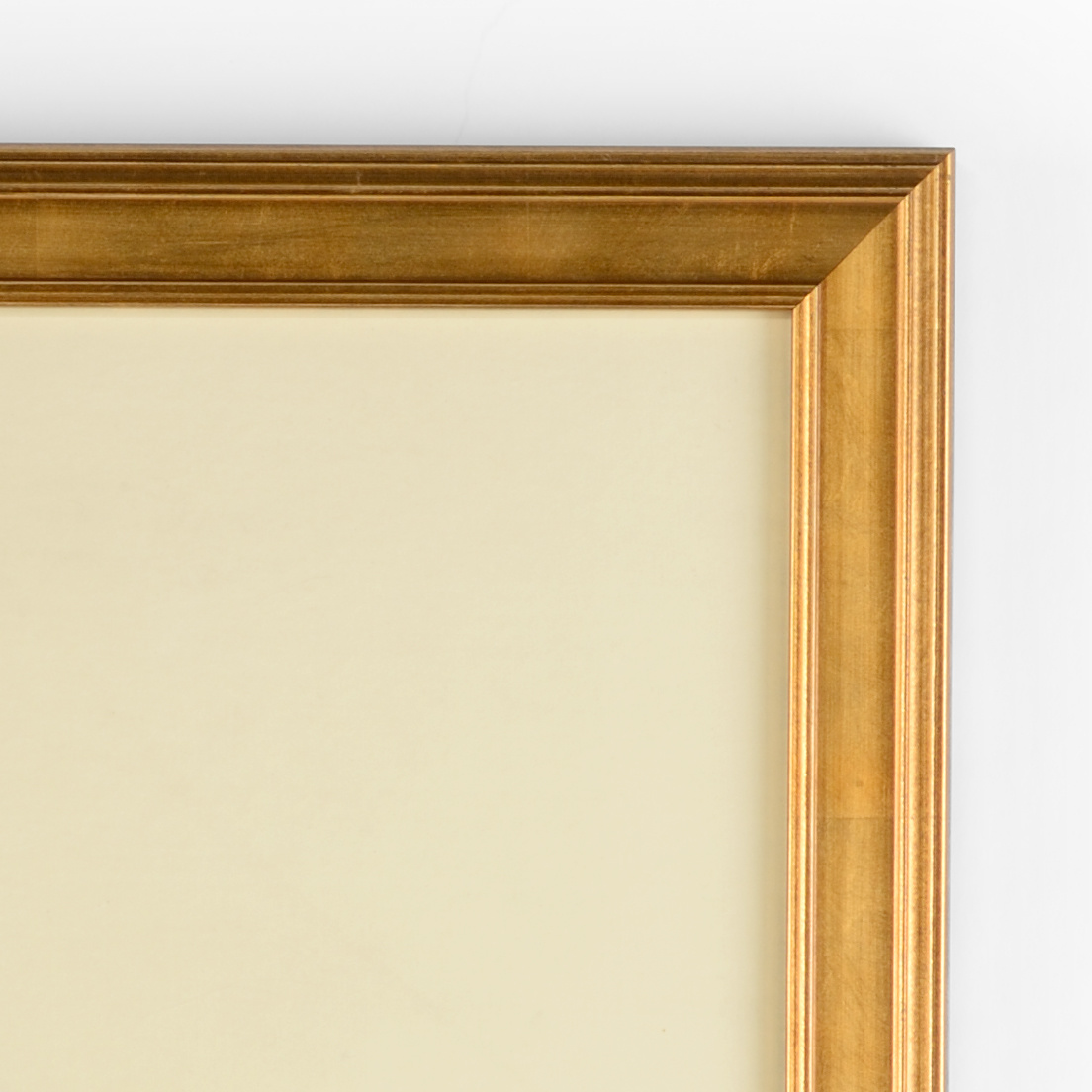 Mounted in a gold plein aire frame with glass. Hand painted. Designed by Jamie Merida.