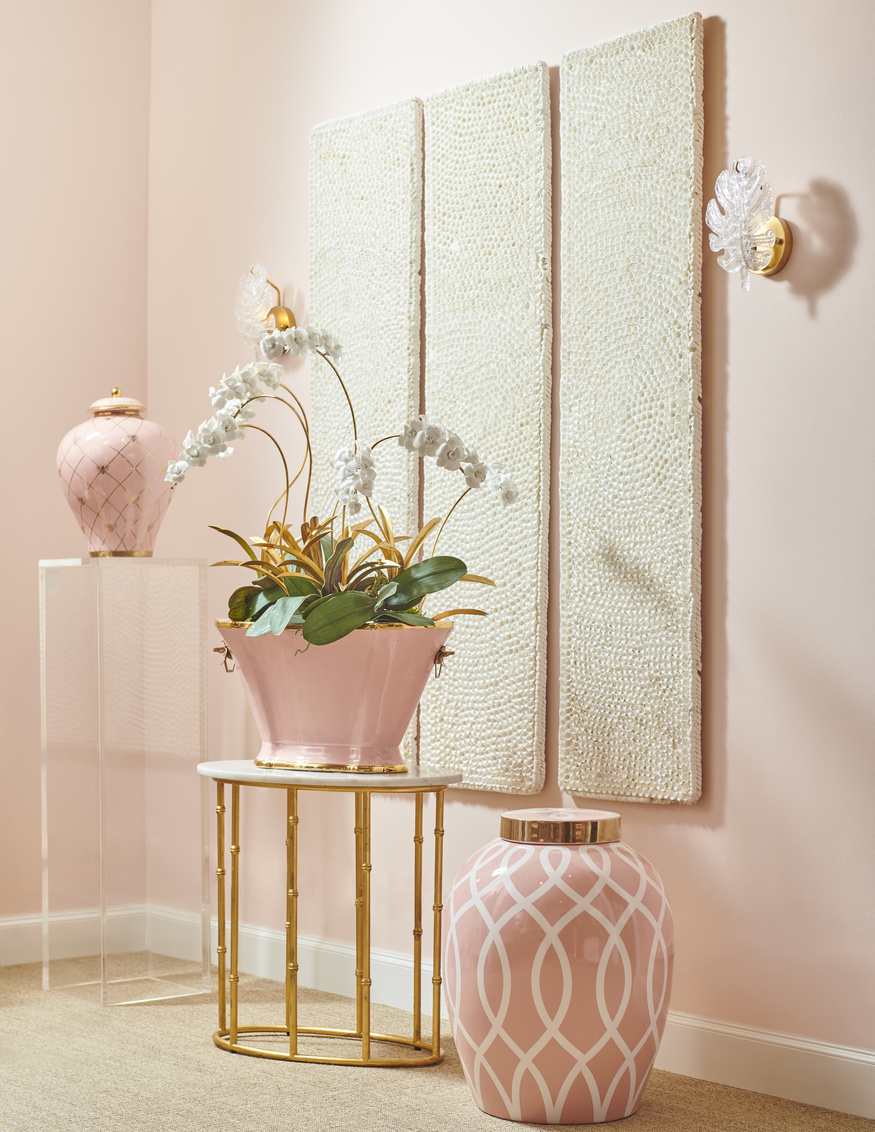 - Finish: Coral Glaze/Metallic Gold