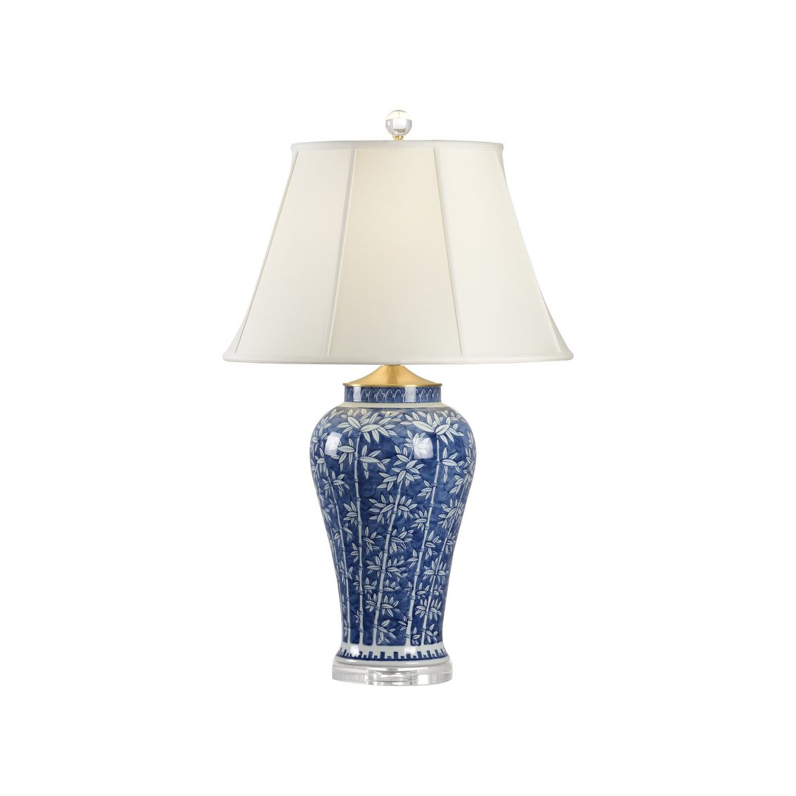 Bamboo inspired blue and white hand painted vase on crystal mount.