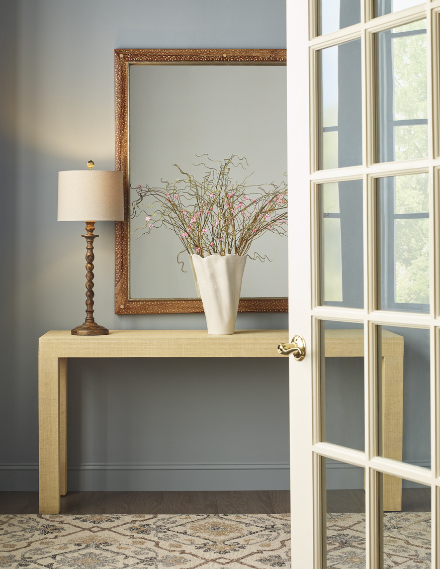 Classic lines make this linen raffia wrapped console easy to use in both modern and traditional interiors. It's a fresh version of the classic Parson's table that will never go out of style. Designed by Jamie Merida.
