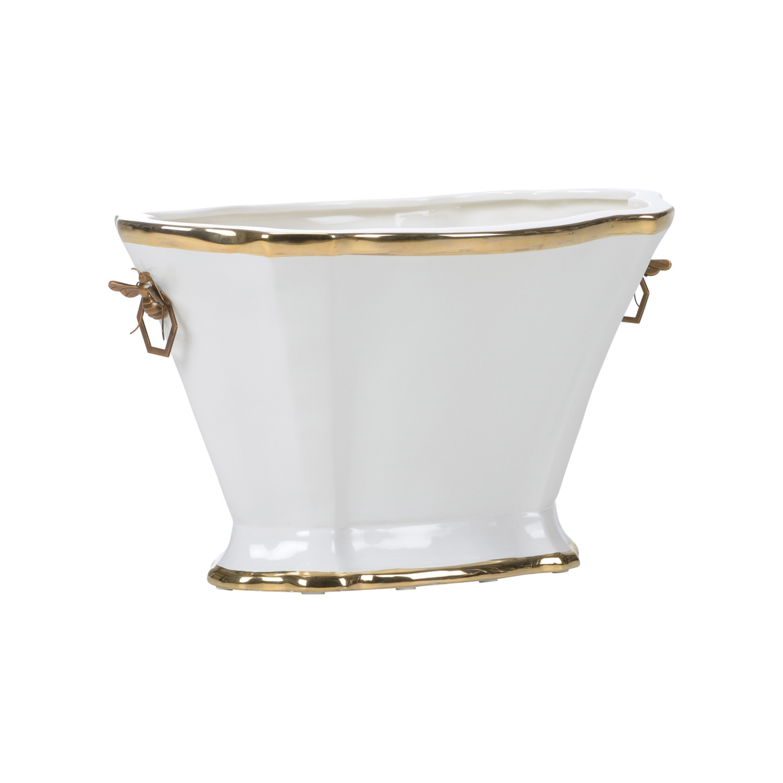 Graced by the royal bee hexagon handles in metallic satin gold this elegant planter doubles as a fruit bowl. Designed... Show more