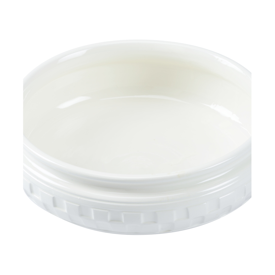 Lovely hand-glazed white ceramic bowl with embossed design. Not for food use.