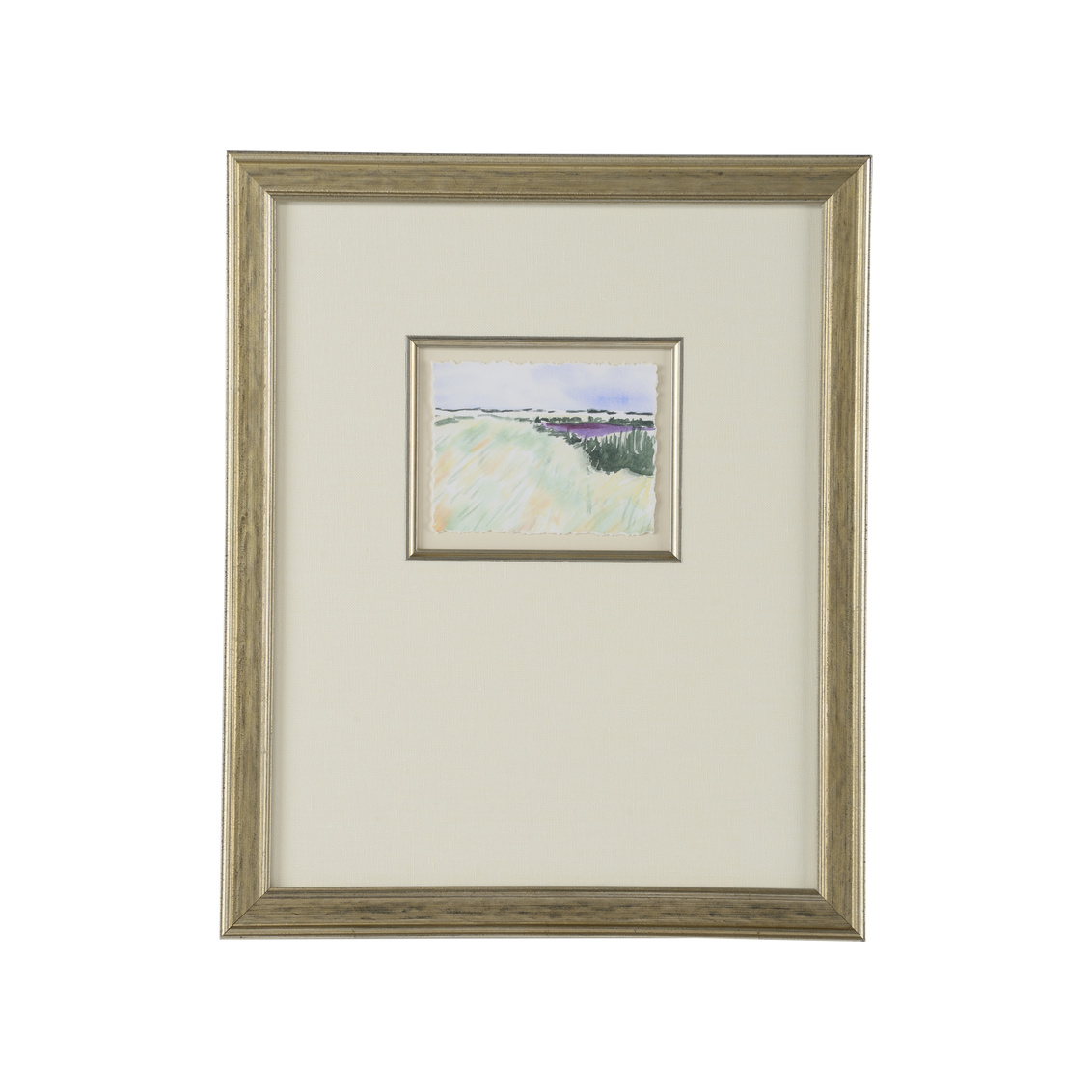 Silver leaf mat with fillet and linen mat. Framed in glass.