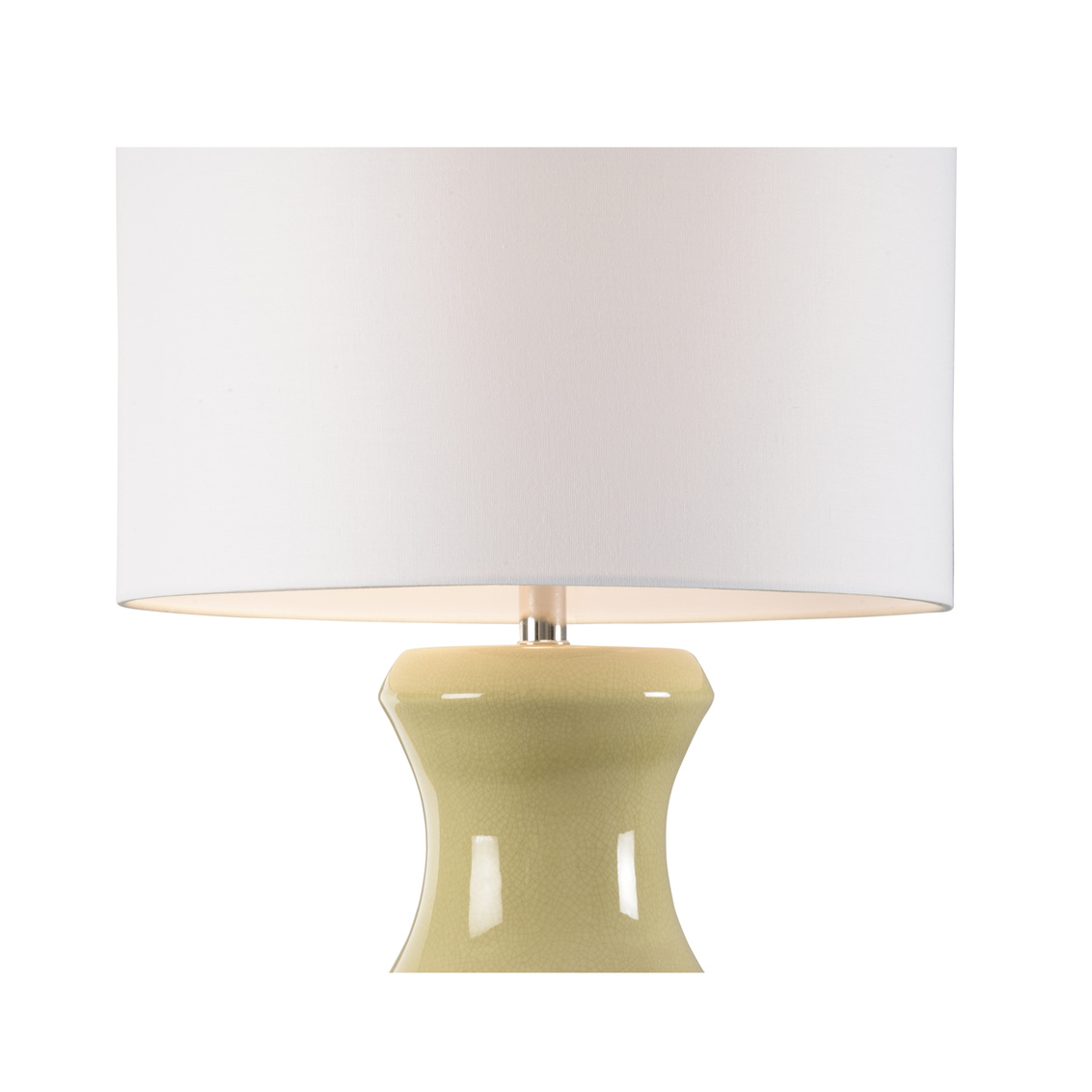 Distinctive ceramic lamp in soft glossy green on a clear acrylic base. Designed by Jamie Merida.