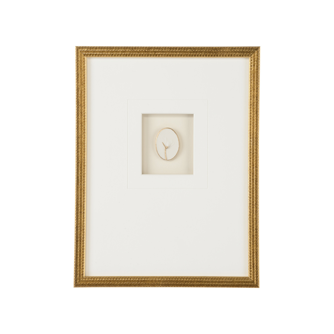 Gold leaf shadow box with 8 ply mat-framed with glass.