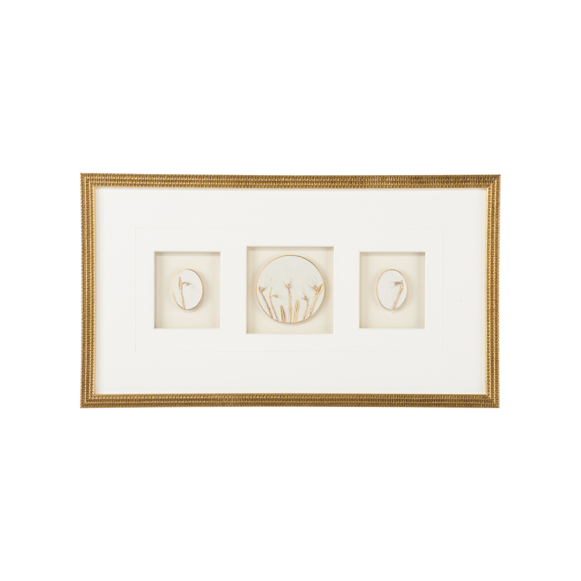 Gold leaf shadow box with 8 ply mat-framed with glass.