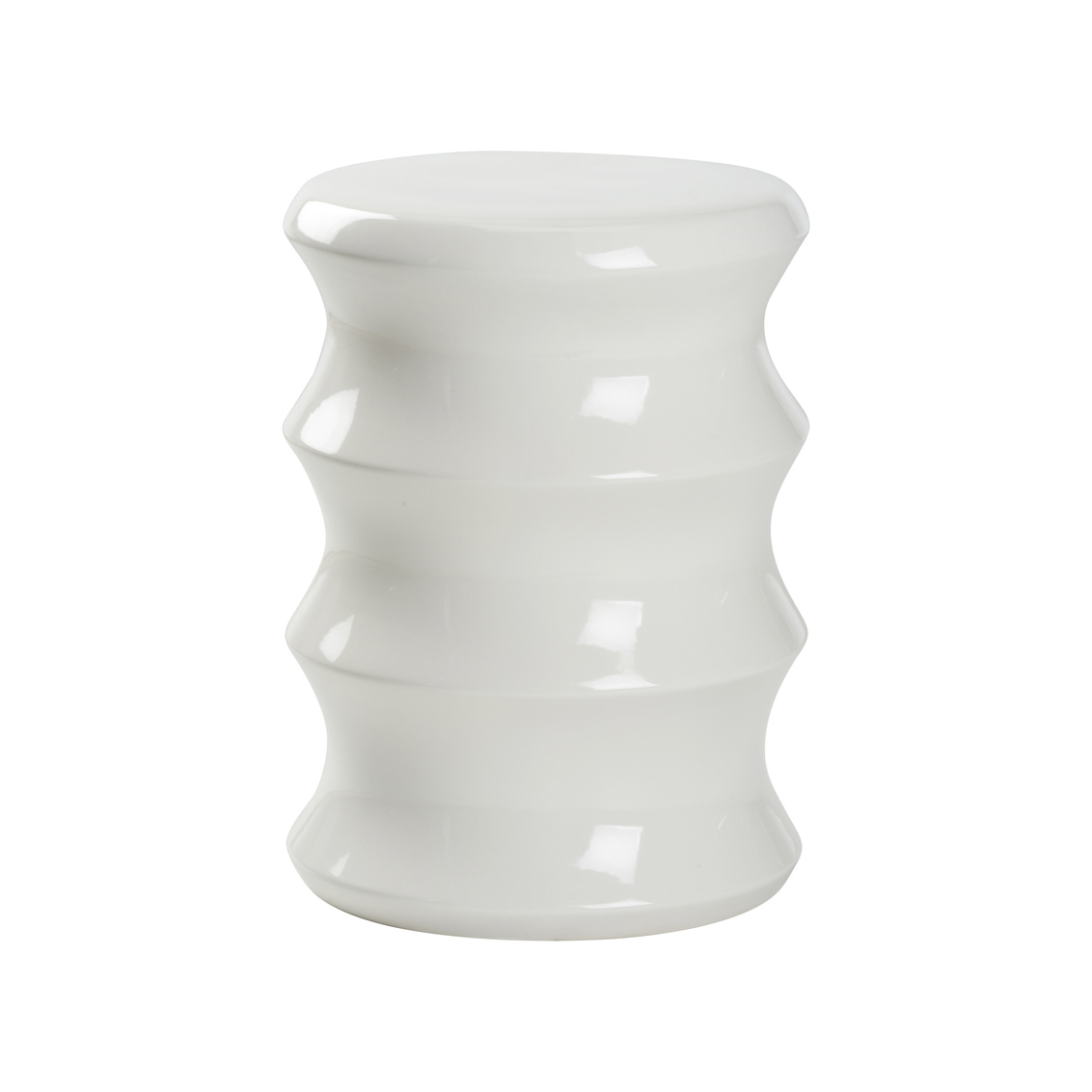 Inspired by bamboo, the Shelbourne Garden Seat is a contemporary stool crafted in a white ceramic glazed finish. Perfect for an impromptu seat or side table. Designed by Jamie Merida.