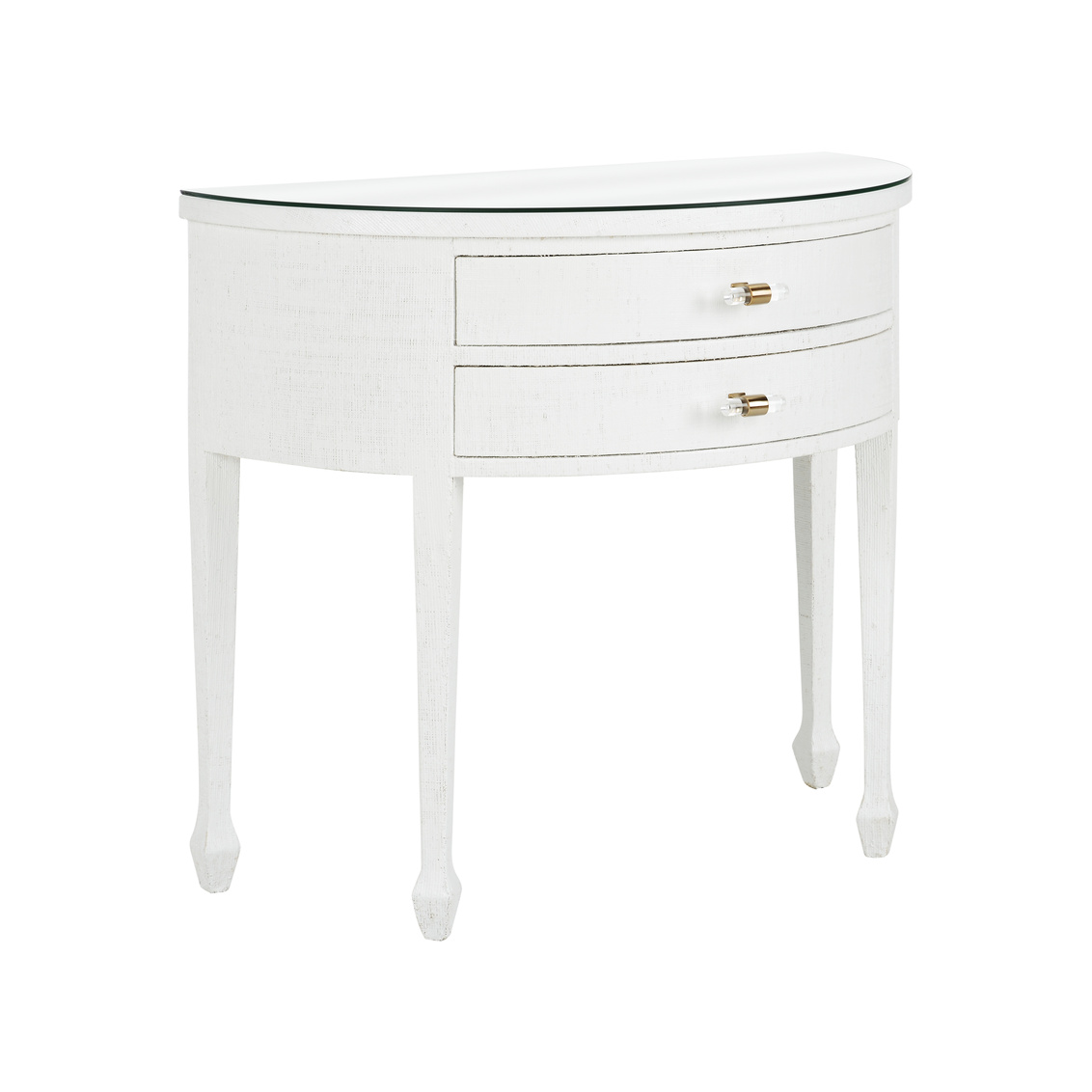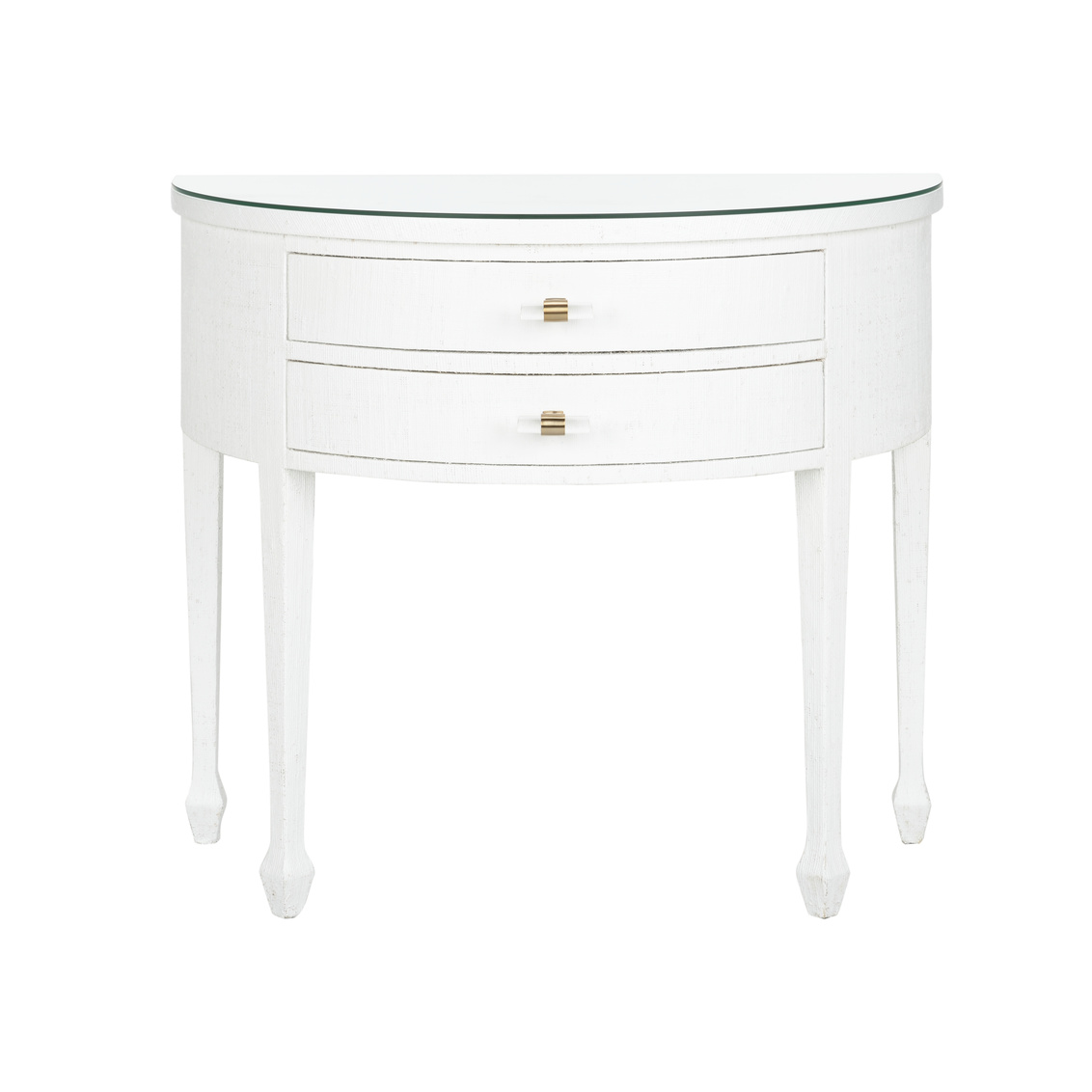 Simple lines enhanced by white grass cloth, the George III Demilune in White boasts a classic feel with a casual... Show more