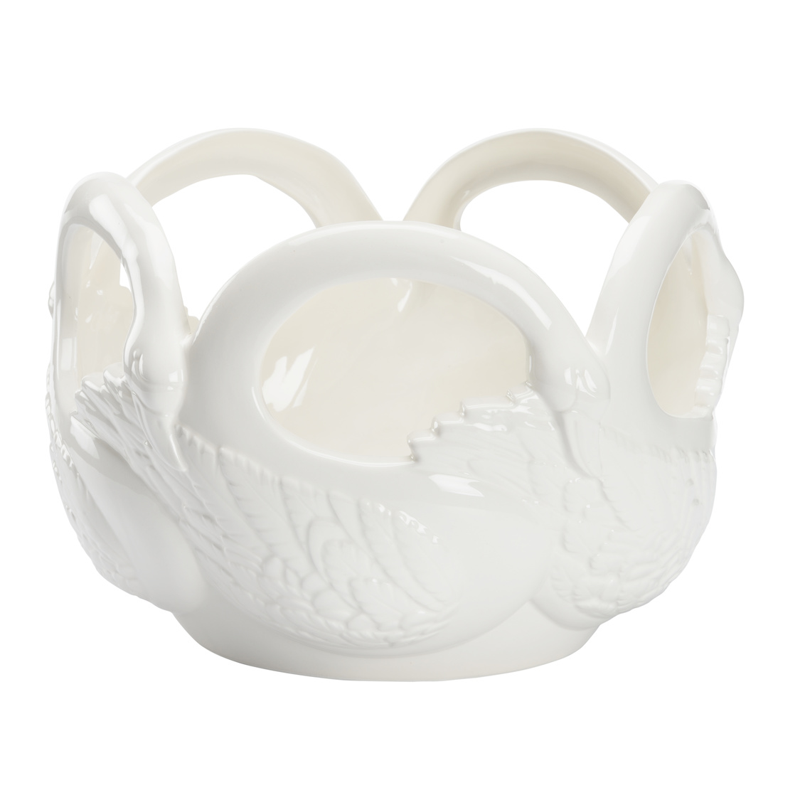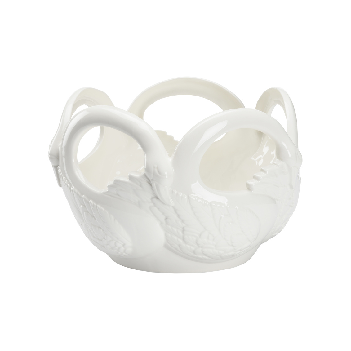 Gracefully curving their necks as if they are dancing in Swan Lake, the Swan Bowl is made of a white glossy ceramic that brings simplicity and elegance as a fruit bowl or an ornamental piece. Made in Italy.