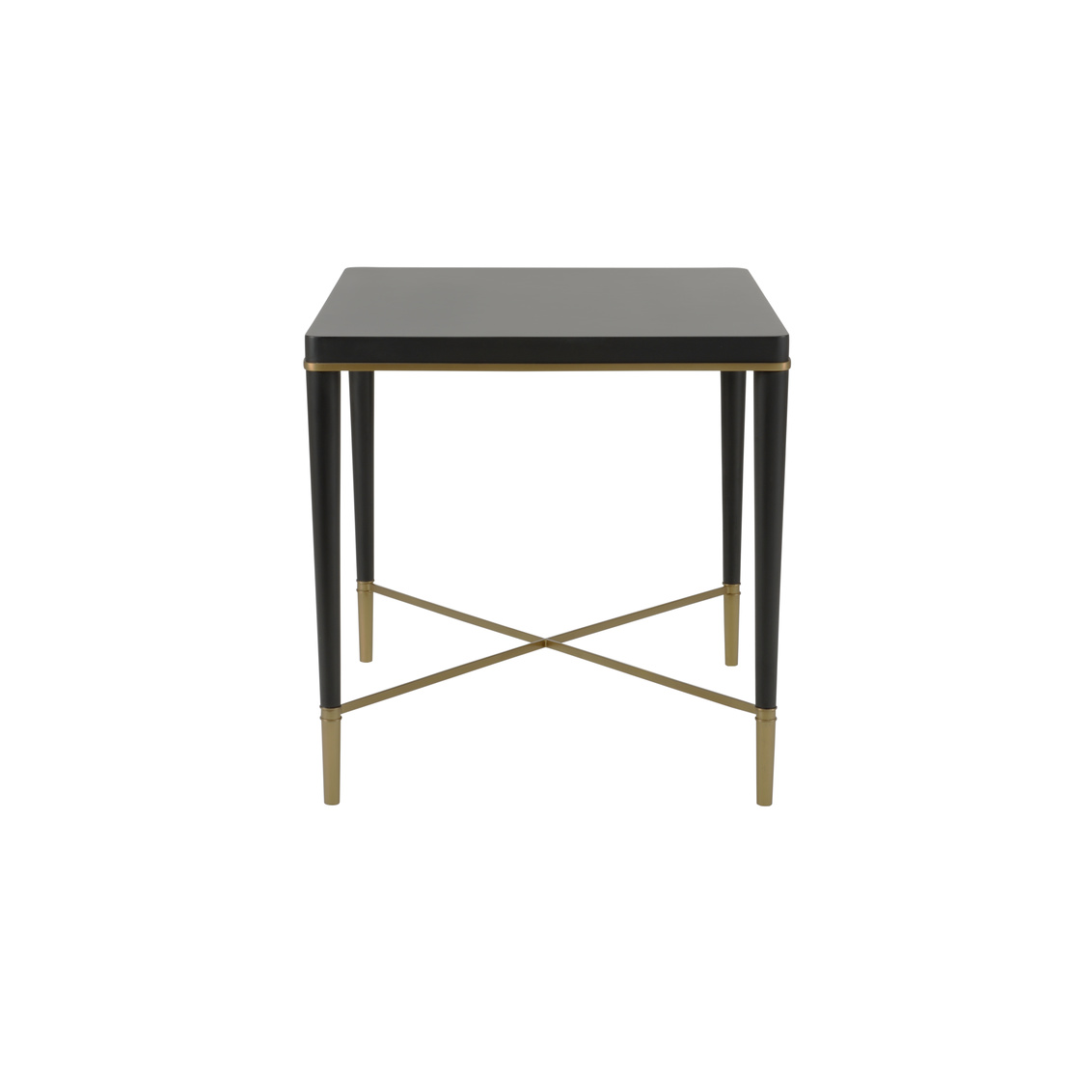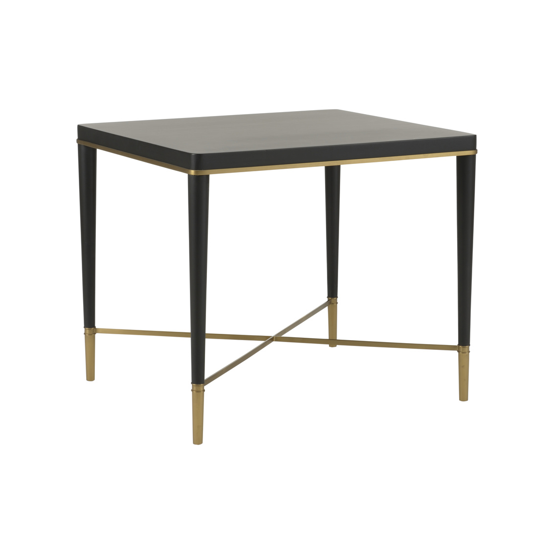 The Hamlet End Table features a clean-lined black finish that is a perfect blend of modern simplicity and understated elegance. Crafted with a smooth, pristine finish, the table features a minimalist design that effortlessly complements a variety of interior styles. Its sleek black surface is beautifully contrasted by gold-capped feet and stretcher, adding a touch of glamour and refinement.