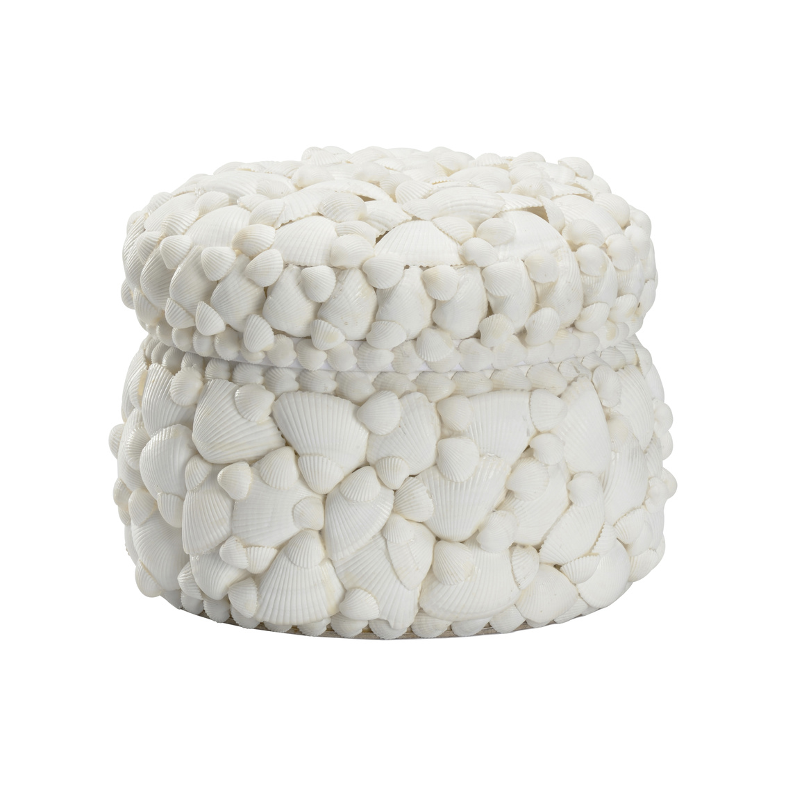 Treasure from the bottom of the sea, the Round White Shell Box is a fun addition to bookshelves that can hold all your treasures.