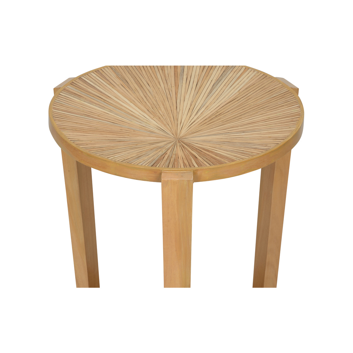 Small and minimalist in style, the Pasha Side Table is two-tiered for those small spaces needing extra storage. The top is hand-inlaid in rich natural rattan in an off-centered sunburst pattern. It's a piece that brings the beauty of nature into the home.