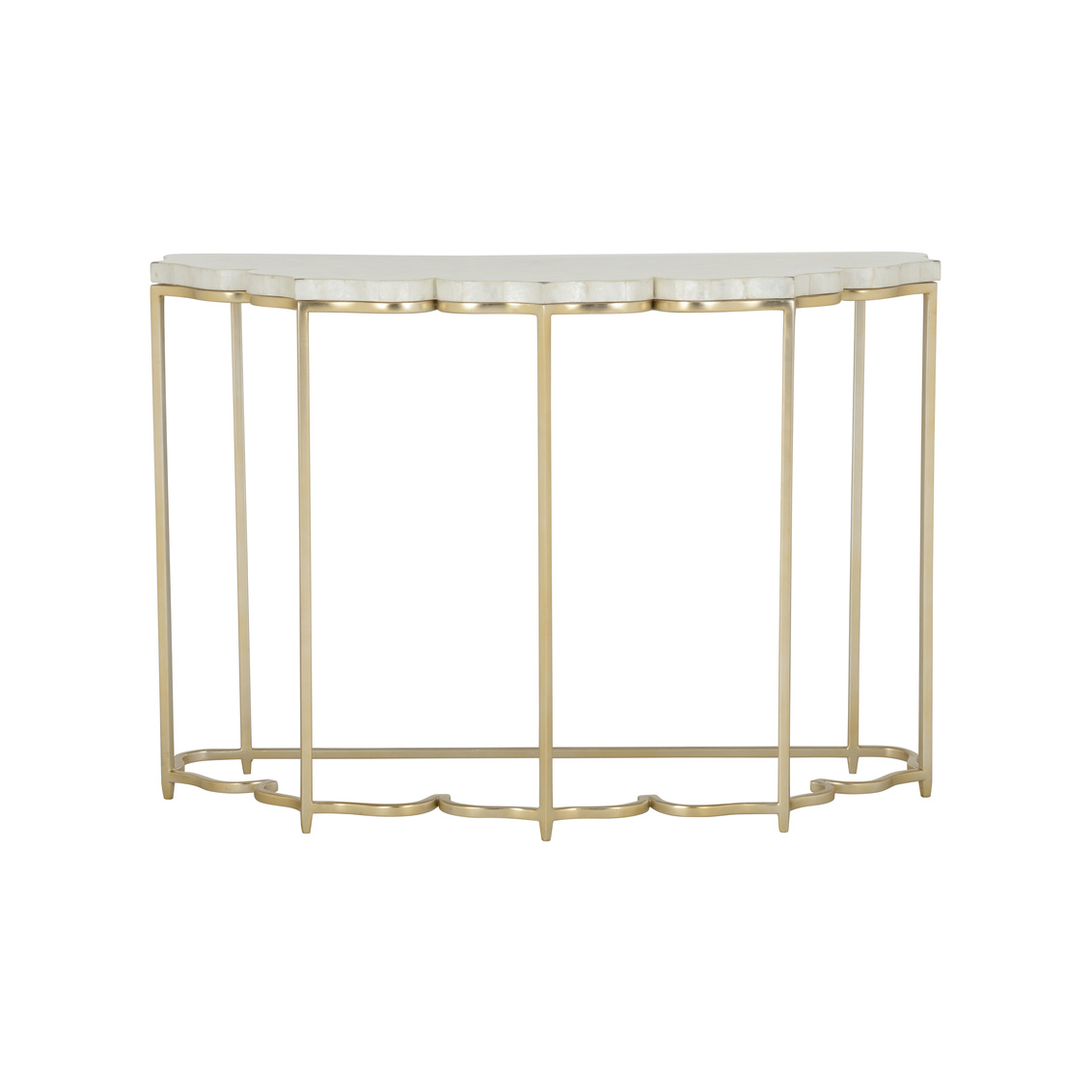 Beautifully crafted of Capiz shell with a gold finished metal base in the shape of a lotus, the Lotus Flower Console is a unique piece that brings natural beauty indoors.