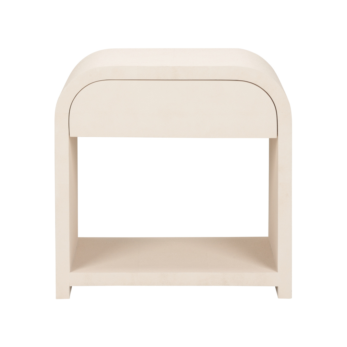 Whether used as a bedside companion, a stylish accent in the living room, or a functional piece in a cozy reading nook, our the Vail Side Table in cream faux shagreen adds a touch of sophistication to any room. Designed by Elizabeth Wicker.