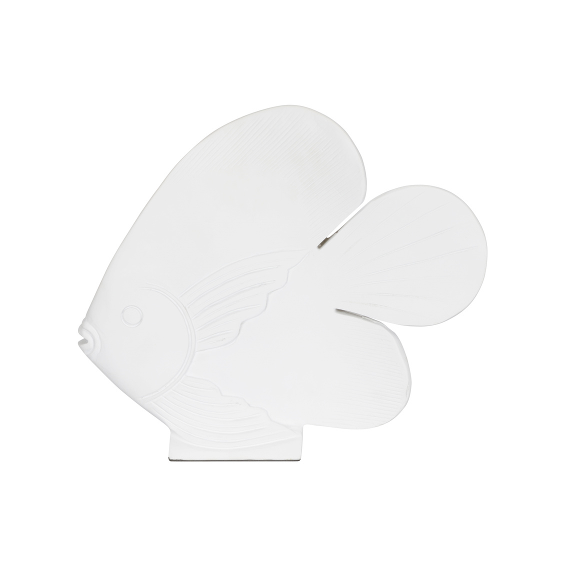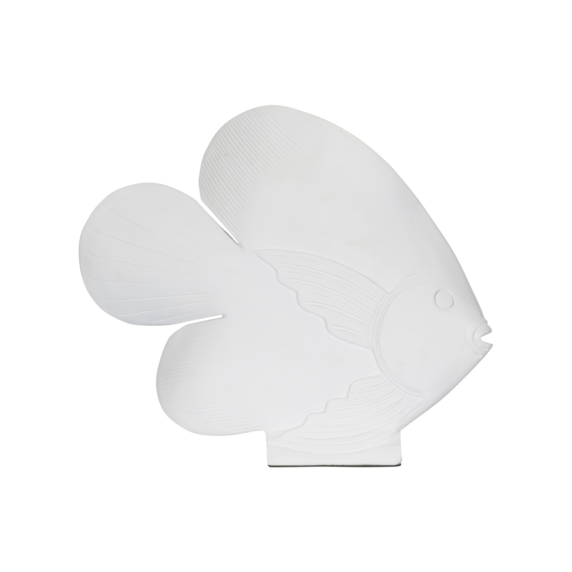 Crafted from resin and finished in white the Angel Fish Statue evokes breezy beachfront retreats and sun-kissed shores. Perfect for displaying on a mantel, shelf, or side table.