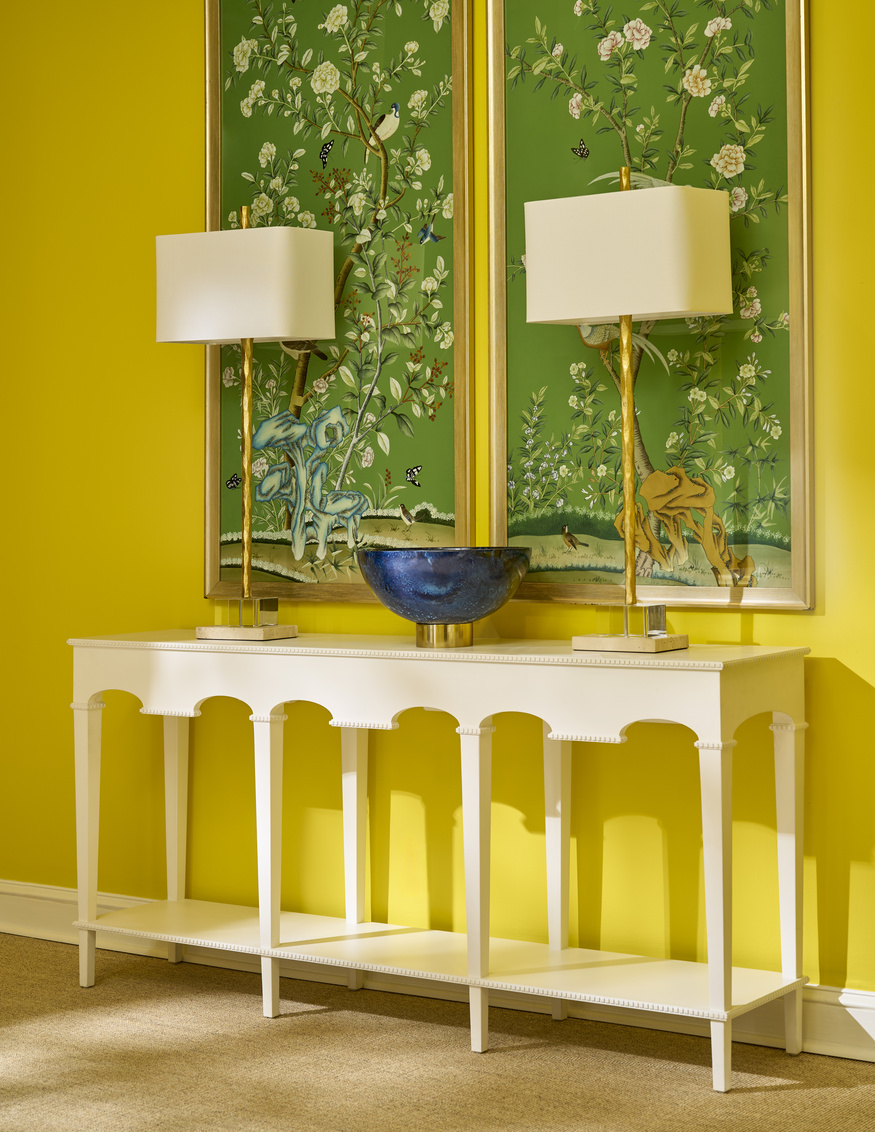 Based On Gustavian Antique and freshened up for modern day interiors in white and Cerused Oak finishes. Designed by Jamie Merida.