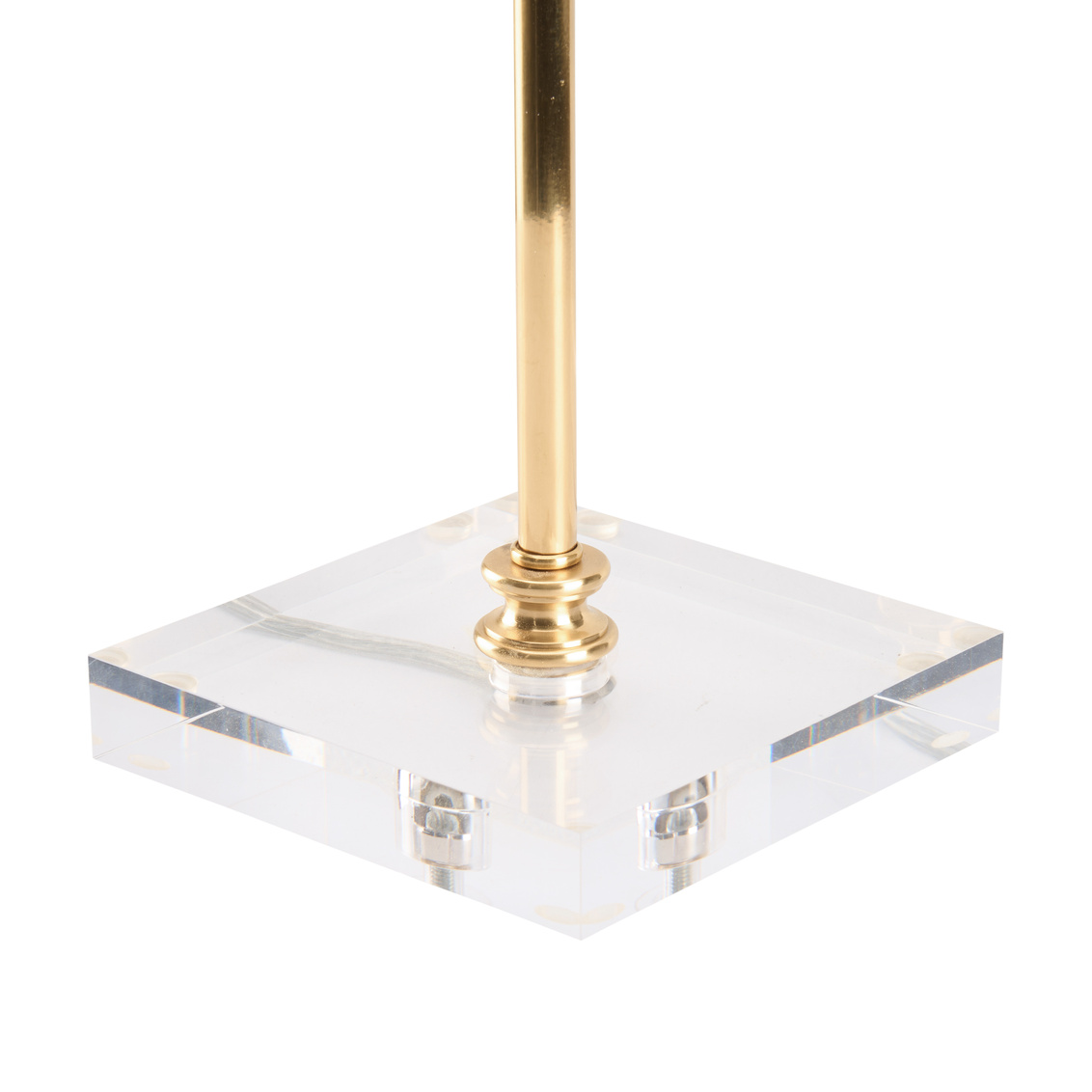 This simple yet sophisticated gold floor lamp features a sleek, refined silhouette set on a clear acrylic base for a... Show more