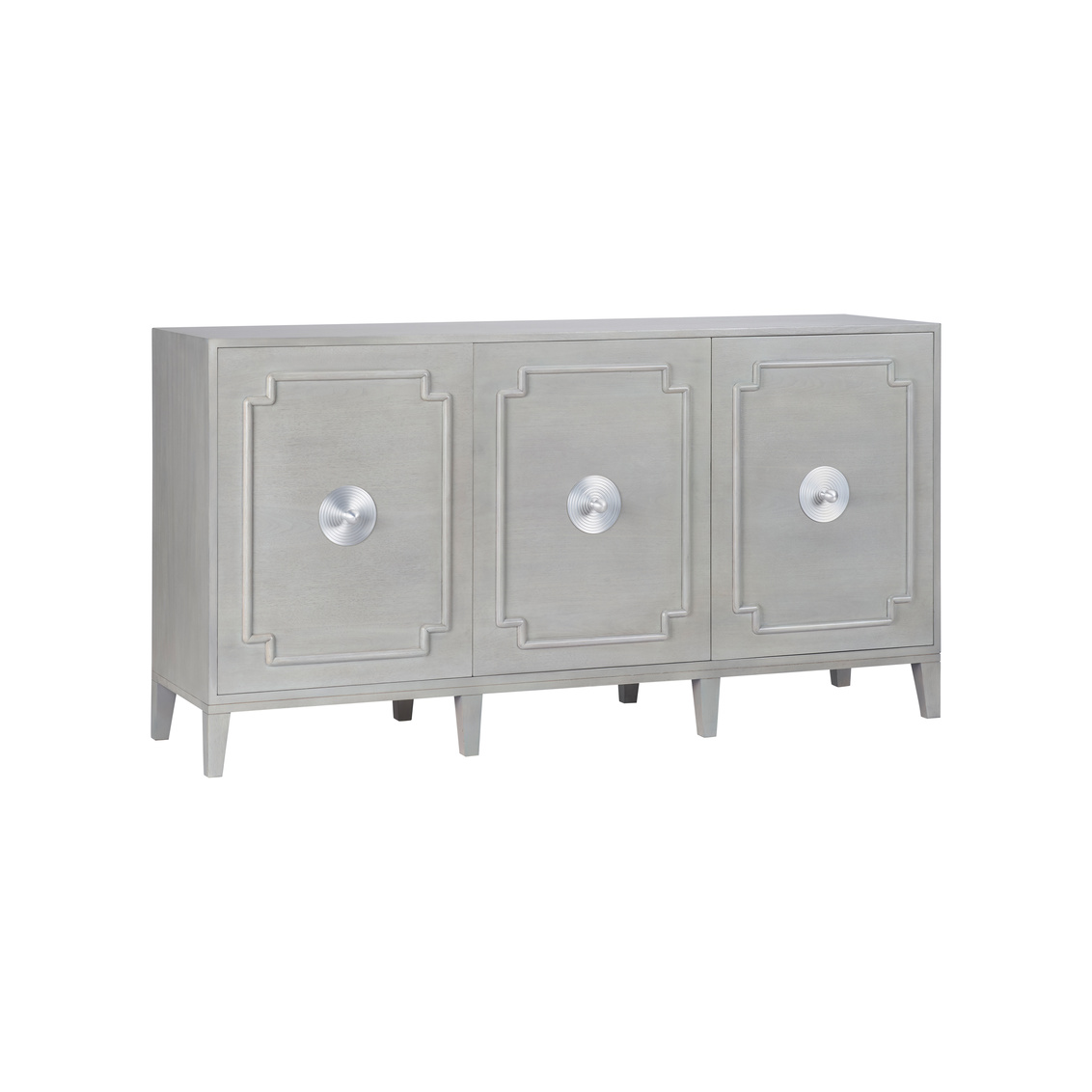 The Madison collection brings timeless sophistication to modern living. Crafted in a refined Weathered Gray finish, both the Madison Petite Buffet and Madison Credenza feature elegant raised panel detailing and bold circular hardware in a soft metallic tone. Perfect for dining rooms, entryways, or living spaces, these pieces blend classic design with contemporary elegance. Designed by Elizabeth Wicker.