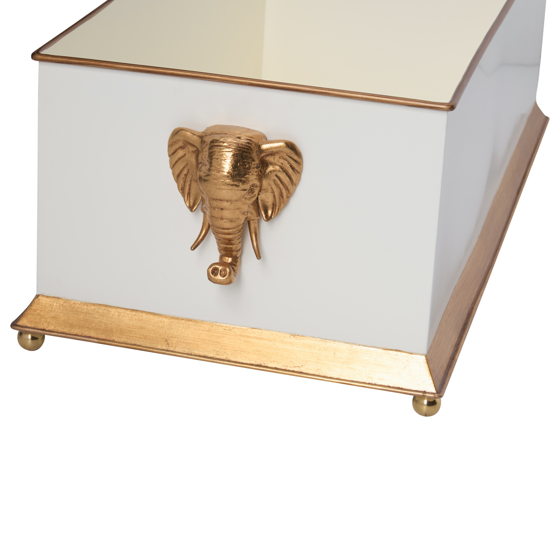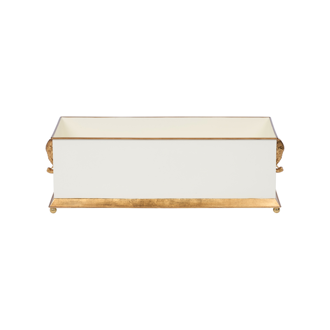 Elevate your greenery with the Elephant Head Planter. Available in black, white, and blue, this elegant metal planter features refined gold accents and sculptural elephant head handles for a touch of whimsy and sophistication. Designed by Bill Cain.