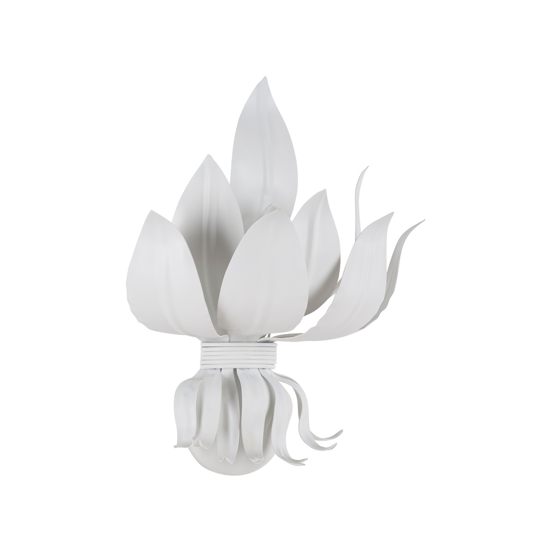 Elevate your interiors with the Potos Wall Sconce, a stunning expression of Italian craftsmanship and timeless design. Made in Italy and crafted from iron, this elegant fixture resembles an unfolding bloom, radiating organic sophistication. Available in gold, white, or bronze finishes, the Potos Sconce adds warmth, texture, and artistry to any setting. Designed for one bulb, it offers a soft, ambient glow perfect for hallways, bedrooms, or living areas.