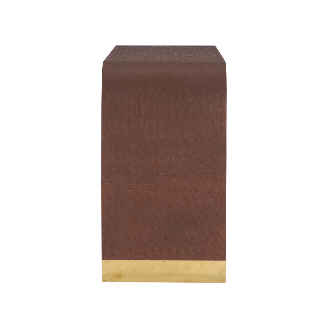 This waterfall console table is wrapped in a colorful raffia, bringing depth, texture, and a touch of organic luxury to its sleek, continuous silhouette. Banded brass feet add a hint of glam and sophistication, offering a refined contrast to the natural finish. A bold yet balanced piece, perfect for making a statement in any entryway or living space. Available in chocolate, white, red, green, blue, black and natural. Designed by Jamie Merida.