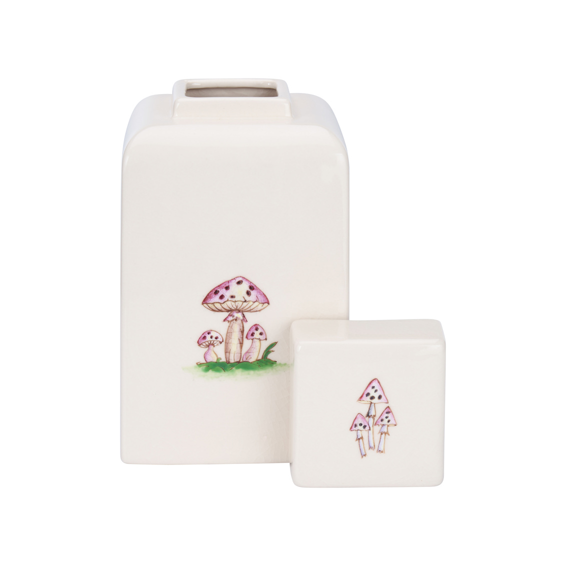 Whimsical and elegant, the Mushroom Vase Collection brings a touch of nature-inspired charm to any space. Crafted from creamy ceramic with a subtle crackle glaze, each vase is adorned with delicately hand-painted mushrooms in soft shades of green, lavender, and rose. Available in three sizes—small, medium, and large—these vases create a delightful grouping or stand beautifully on their own. Perfect for displaying fresh florals, greenery, or simply as decorative accents, the Mushroom Vases add an organic yet refined feel to your home décor. Designed by Bill Cain.