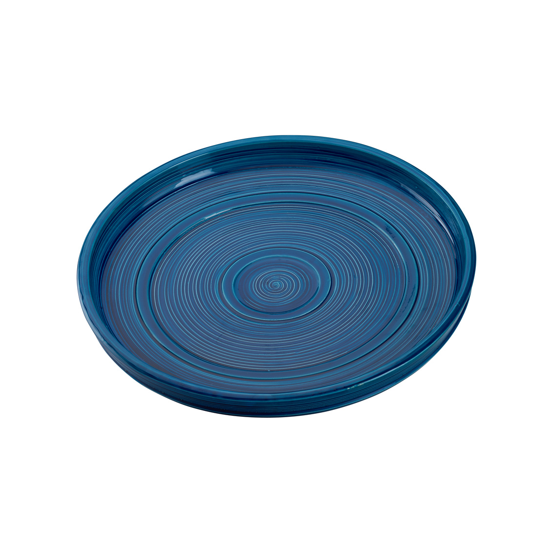 The Increspatura Plate - Blue reflects the elegance of Italian craftsmanship with its mesmerizing rippled texture and deep oceanic hue. Made in Italy, this ceramic plate combines artisanal design with modern sophistication. Its subtle concentric detailing adds visual depth, making it perfect as a serving piece or decorative accent.