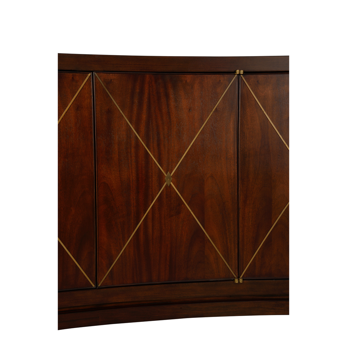 Perfectly proportioned Console offered in both Cerused Oak and Mahogany Finishes. The front of console has slight concave curve that is reminiscent of Hollywood Regency Style. Brass inlayed banding ads a bespoke styling. Designed by Jamie Merida.
