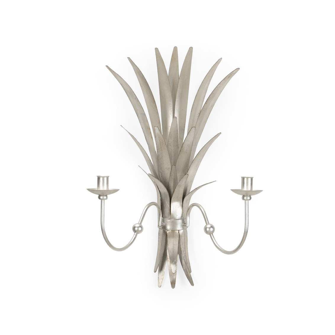 Create beautiful task lighting with our hand formed wheat sconce. This stunning iron wall sconce features a sheaf of leaves finished in silver leaf that complements any design style. Add tapered candles to a feature wall for a soft glow or flank a mirror or picture to create a focal point in your decor.