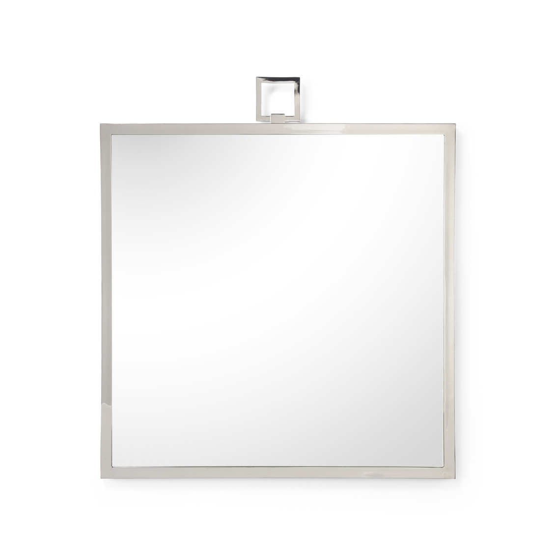 Enhance your space while adding function and beauty with our square mirror. Featuring an iron frame with a sleek polished nickel finish, this modern style mirror blends effortlessly with any design. This 36" wall mirror can reflect light and your decorative style when hung over a console in the foyer or chest in the living area.