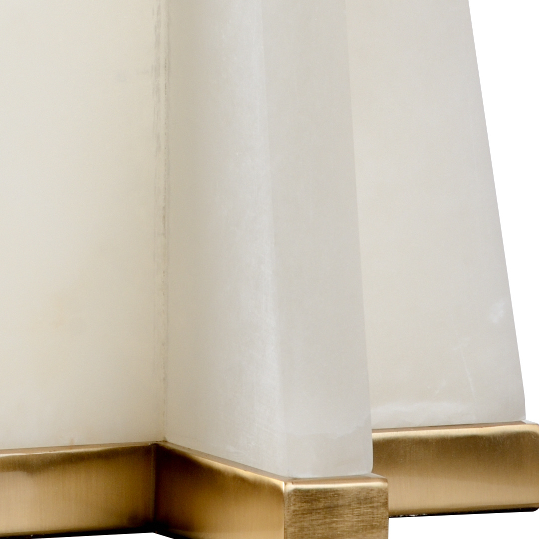 Natural white alabaster pyramid with antique brass finished base and parts