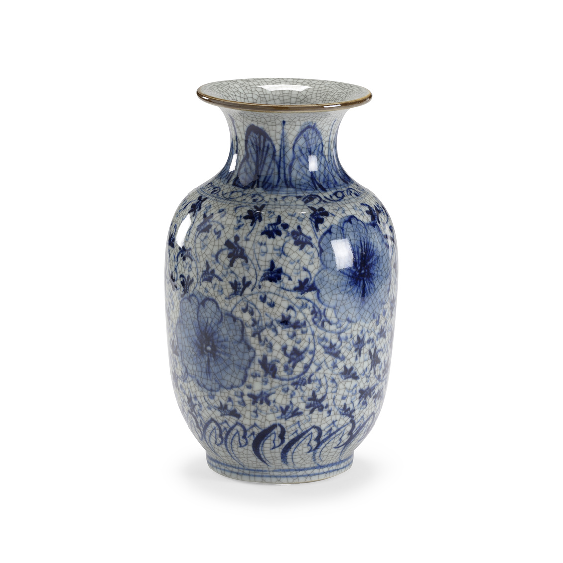Enhance the beauty of your home with Drayton Vase. This vase features hand painted porcelain with a crackle finish. The traditional Chinese blue and white floral design complements any design style. Makes an elegant decorative accent or display with dried or fresh flowers for a beautiful centerpiece.