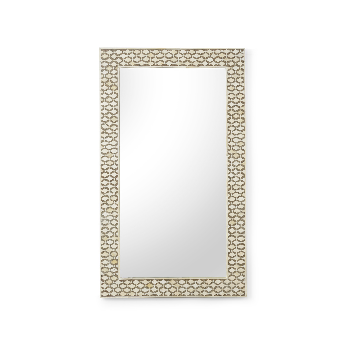Enhance your artistic style with our Elgon Mirror. Featuring bone inlay hand placed in a quatrefoil pattern, this 48" rectangular wall mirror is an eye- catcher. Whether welcoming guests in your entryway or adding dimension in your living area, this exquisite one-of-a-kind mirror will complement your design.