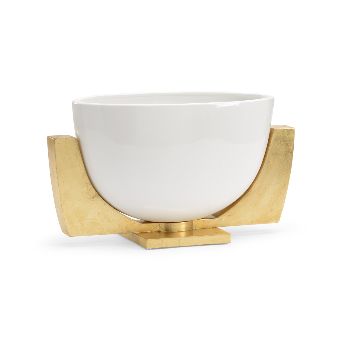 White porcelain bowl with antique gold leaf iron stand
