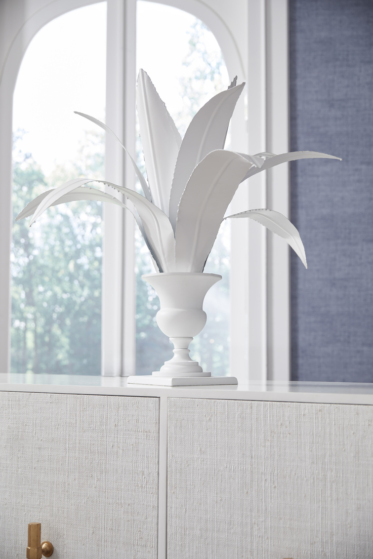Add a vintage vibe with our lyon tole flower. This 31.5" yucca plant in a classic urn is crafted of steel and painted in a white finish. The neutral color allows this piece to blend effortlessly in any design style. Place this nature inspired accent throughout your home or office.
