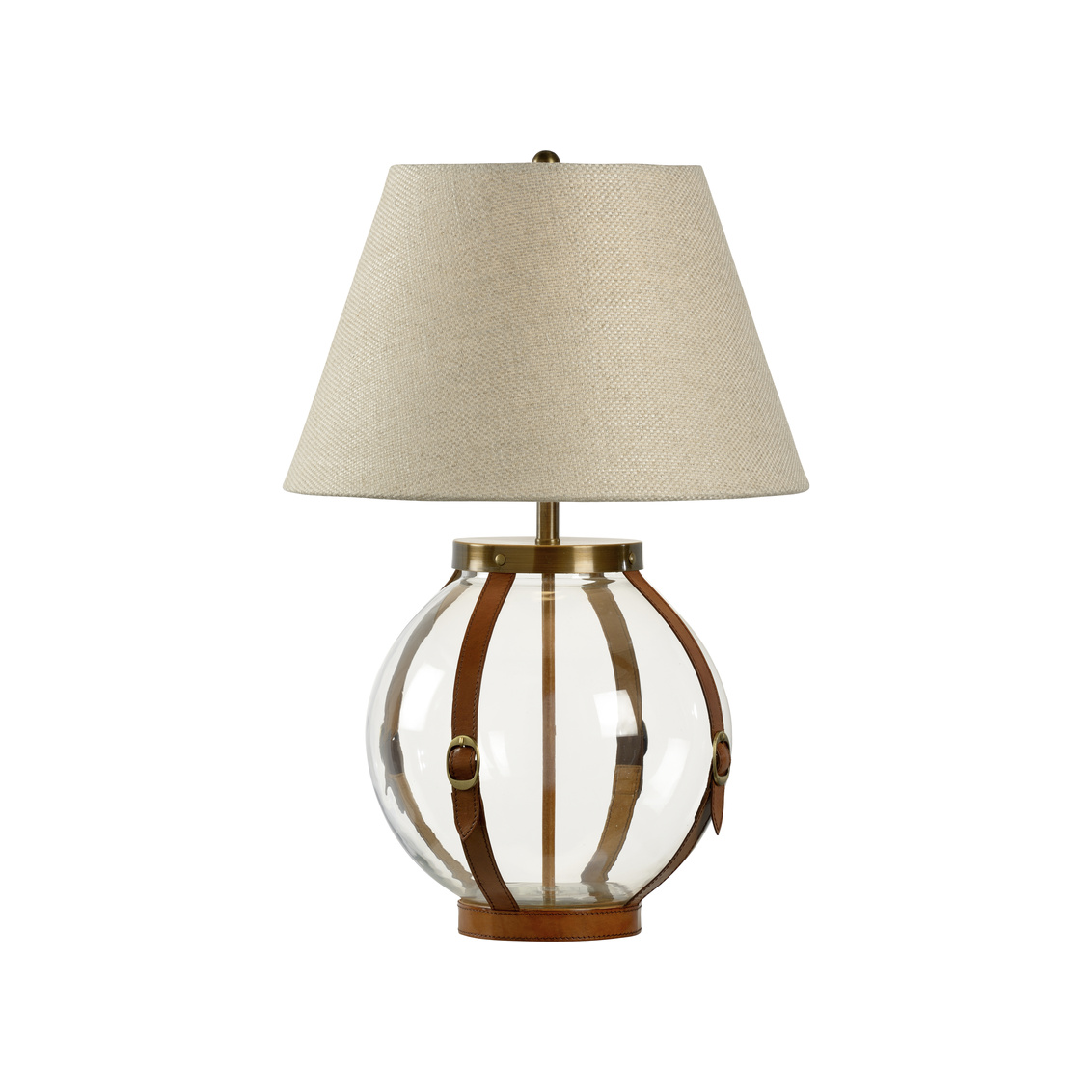 Clear glass sphere with chestnut leather straps and with coffee bronze brass parts