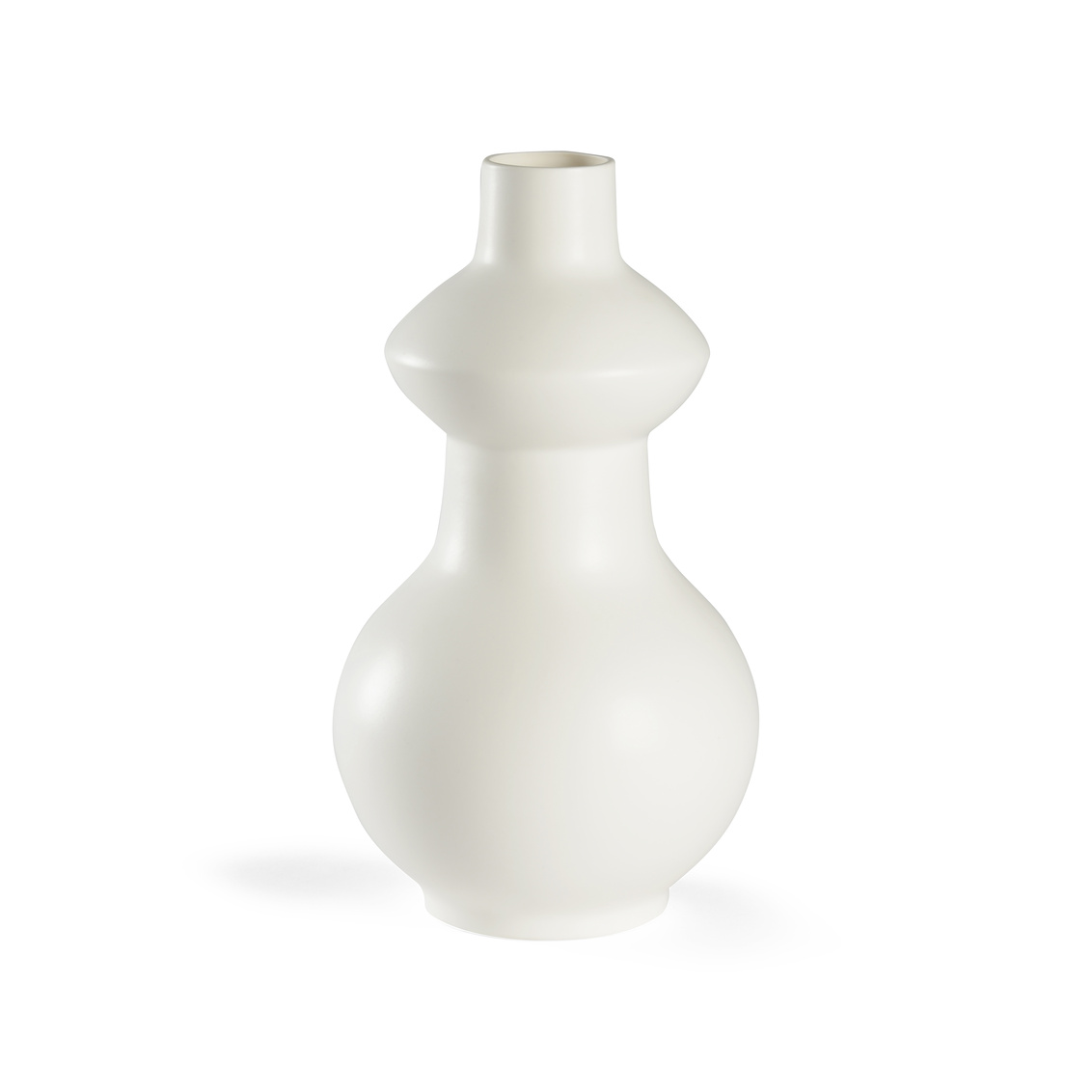 Add a modern touch to any design with Yokoyama Vase. This 14" matte white glazed ceramic vase has graceful curves. The unique silhouette and simple design make this an ideal accent for any space. You may add flowers or pair with other vases for a different design aesthetic. Designed by Bradshaw Orrell.