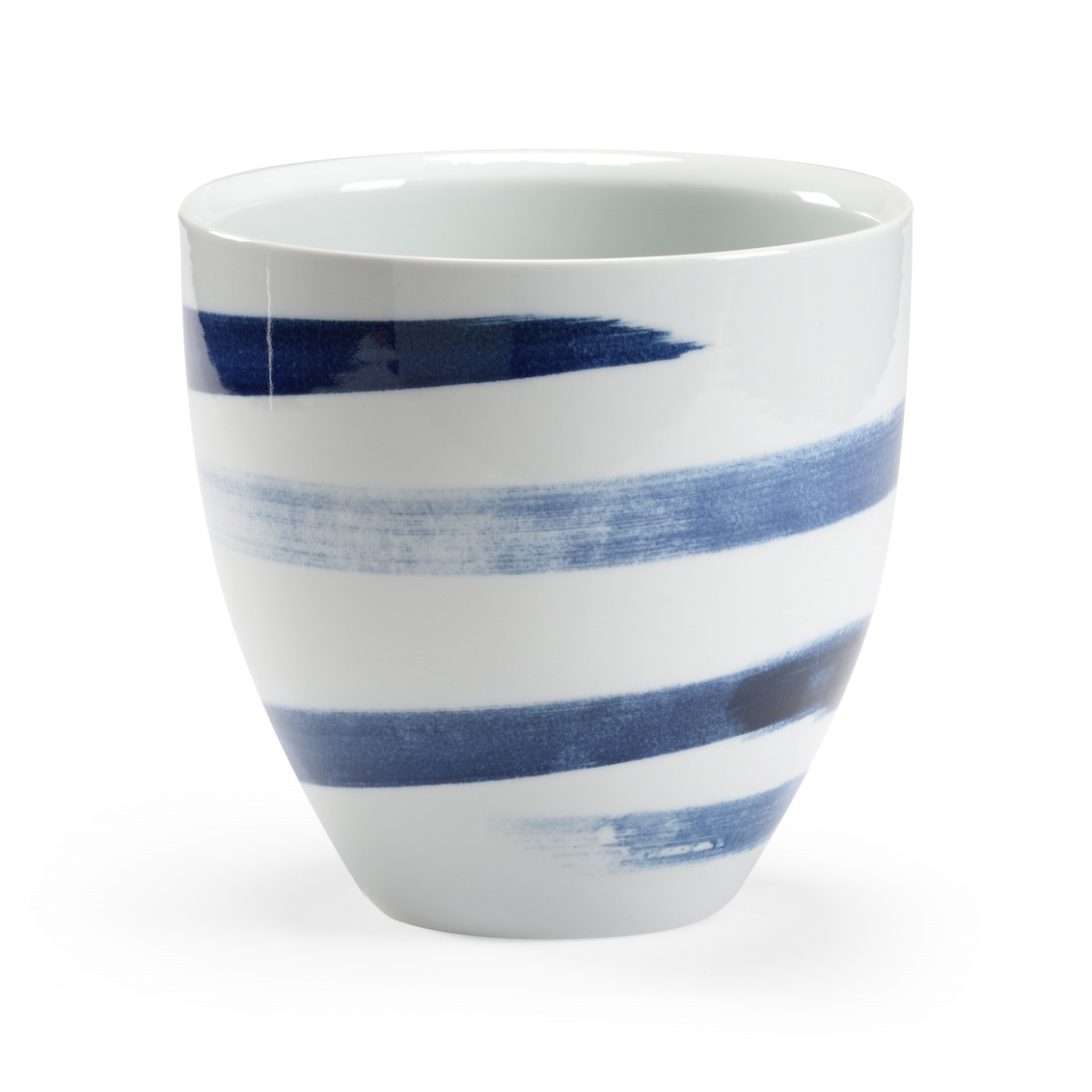 Enhance the movement and beauty of your home with Essex Cachepot. Add a plant to this playful white glazed ceramic pot for a natural element in your decor. The hand painted cobalt swirl design provides visual interest. Design and color shades may vary.