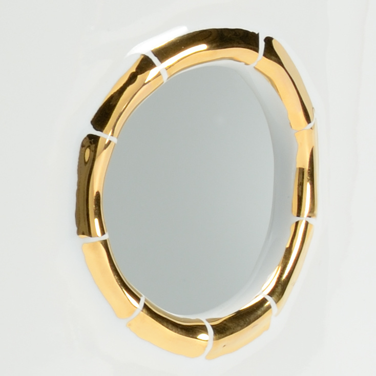 - Finish: Metallic Gold/White Glaze
