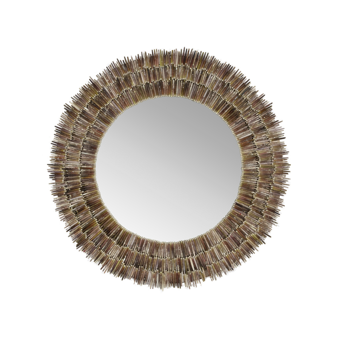 Mirror in round frame constructed with individually applied urchin spine shells.